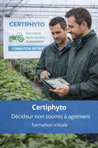 réglementation, produits phytosanitaires, méthodes alternatives, environnement, voie de contamination, sécurité pour les personnes, santé, application, prévention des risques, vente grand public, vente aux professionnels, test validation, techniques alternatives, biocontrôle, lutte biologique, auxiliaires, certiphyto, certificat produits phytosanitaires, usagers, législation, obligations Réglementation et sécurité environnementale : Réglementation liées à la pratique professionnelle de la vente, responsabilité vis-à-vis des usagers, législation et obligations Les voies de contamination pour l'environnement, la faune et la biodiversité La prévention des risques et les pratiques et aménagements pour limiter l'impact des produits phytosanitaires Santé sécurité de l'applicateur : Types et dangerosité des risques pour les personnes Situations d'expositions aux dangers Conduite à tenir en cas d’accident liés aux produits phytosanitaires Réduction de l'usage, méthodes alternatives : Les techniques alternatives (bio contrôle, résistances naturelles, auxiliaires …) Diagnostic de culture et comparaison avec des méthodes alternatives Passage du test : Test de validation du Certiphyto